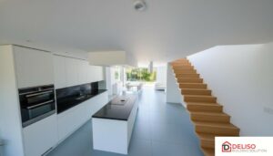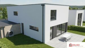 La maison sera équipée de: 4 chambres – dressing – bureau – cuisine équipée avec ilot central (électro Siemens – plaque vitro, lave-vaisselle, four micro-onde, four, frigo et hotte) – une salle de bain meublée avec douche, baignoire et WC – une deuxième salle d’eau avec WC – living avec salle à manger et cuisine ouverte– buanderie – 1 WC séparé – Chauffage sol (tout le rez + SDB à l’étage) par pompe à chaleur avec production d’eau chaude sanitaire, la pompe à chaleur permet également de refroidir de quelques degrés lors des fortes chaleurs – Installation photovoltaïque – ventilation simple flux type C+ – citerne eau de pluie avec groupe hydrophore – châssis PVC double vitrage avec invisivent – garage.