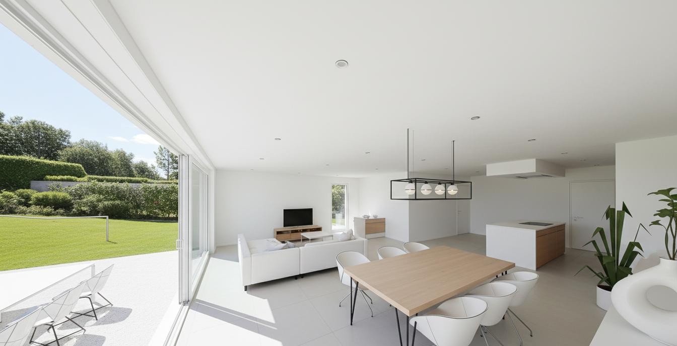 Très grande maison zéro énergie en cours de réalisation sur la commune de Bütgenbach. La maison sera équipée de: 4 chambres – dressing – bureau – local technique – cuisine équipée avec ilot central (électro Siemens – plaque vitro, lave-vaisselle, four micro-onde, four, frigo et hotte) – une salle de bain meublée avec douche, baignoire et WC – une deuxième salle d’eau avec WC – un WC visiteur – living avec salle à manger et cuisine ouverte– buanderie – Chauffage sol (tout le rez + SDB à l’étage) par pompe à chaleur avec production d’eau chaude sanitaire, la pompe à chaleur permet également de refroidir lors des fortes chaleurs – Installation photovoltaïque – ventilation simple flux type C+ – citerne eau de pluie avec groupe hydrophore – châssis PVC double vitrage avec invisivent – garage.